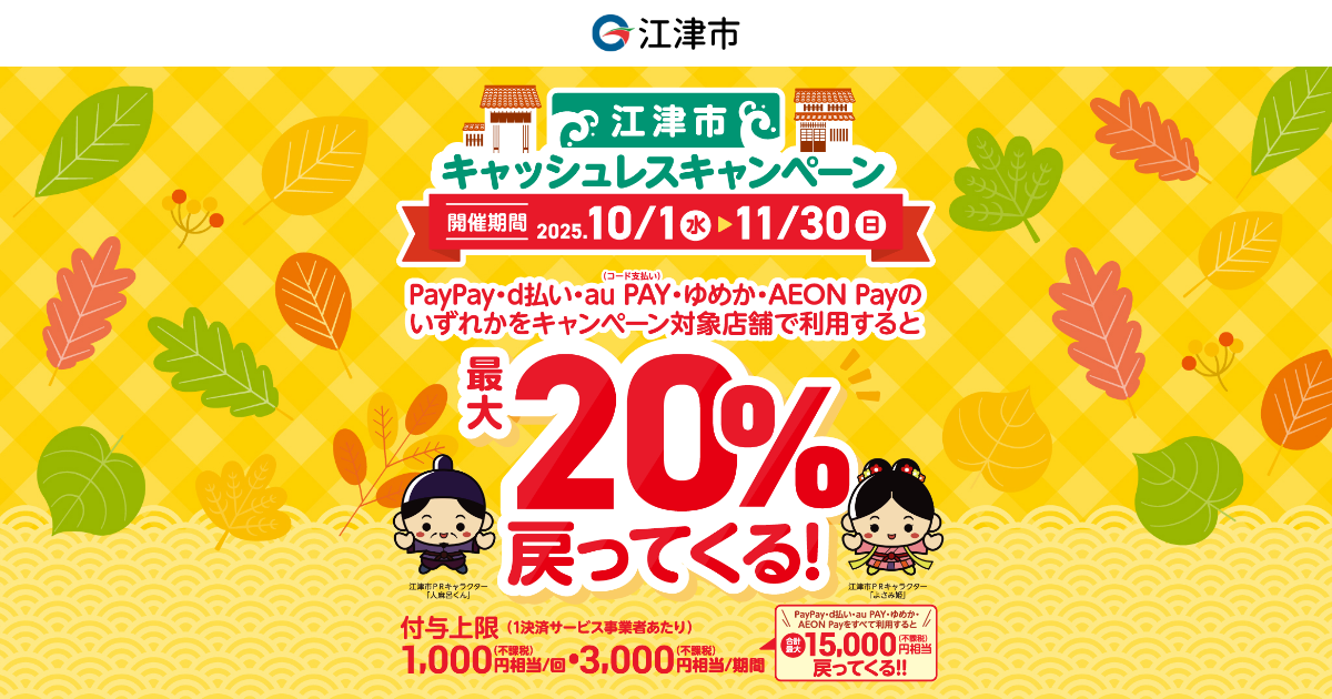 島根県江津市公式の「江津市キャッシュレスキャンペーン」は下記です。